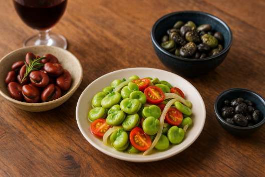 「ひと粒ごとに色が違う、三色そら豆のサラダ皿。今夜のワインは、きっといつもよりゆっくり減っていきます。」そんな光景がふっと浮かぶような、通好みのそら豆たちがいます。皮が小豆色の赤そら豆…